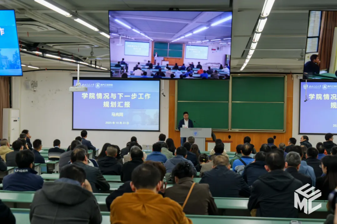 马光同对学院下一步工作提出思考和规划,学院一是将进一步强化高水平师资队伍建设,持续实施“人才强院”战略,构建“精准引才+分层育才”引育机制;二是持续加强本科教学与人才培养力度,落实好上半年召开的本科教学工作会议精神和部署安排,稳步推进“本科教学跃升行动”五大计划(教学内涵提升计划、教师发展支撑计划、教学成果突破计划、数智赋能变革计划、教学管理保障计划);三是优化学科方向布局、强化传统特色优势,重点围绕三大板块(牵引供电与传动、新能源电力与储能、磁悬浮与磁动力),18个方向开展研究布局。此外,他还向大家报告了学院教职工岗位绩效考核分配方案优化调整的背景、思路,希望老师们集思广益,进一步完善绩效考核分配方案。