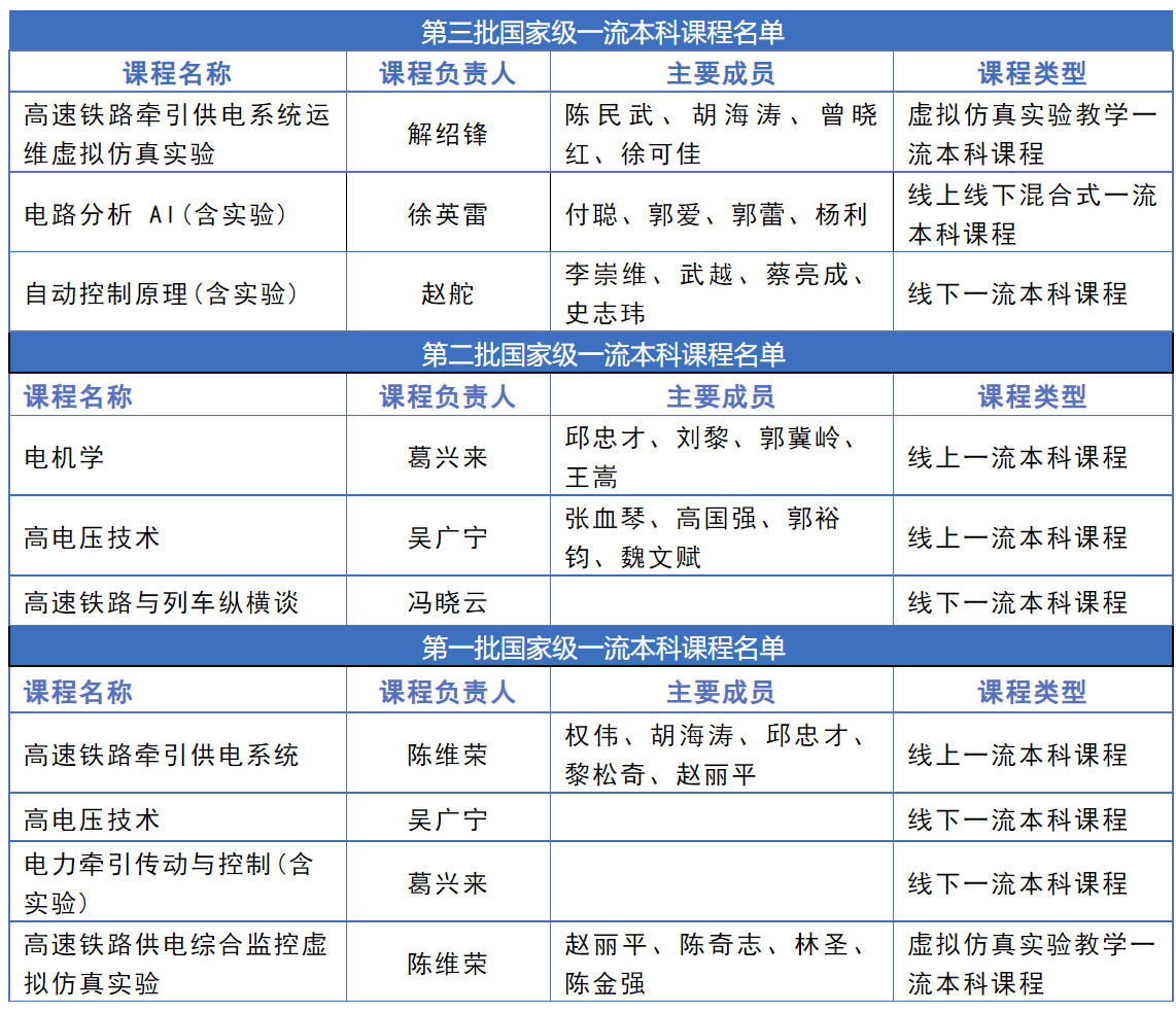 日前,教育部发布《关于公布第三批国家级一流本科课程认定结果的通知》,91成人 3门课程入选第三批国家级一流本科课程。其中,解绍锋教授教学团队的《高速铁路牵引供电系统运维虚拟仿真实验》获批虚拟仿真实验教学一流本科课程,徐英雷教授教学团队的《电路分析 AI(含实验)》获批线上线下混合式一流本科课程,赵舵副教授教学团队的《自动控制原理(含实验)》获批线下一流本科课程。