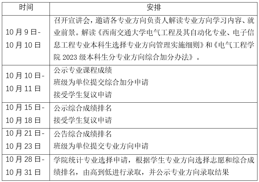 三、 专业方向选择工作安排日程如下: